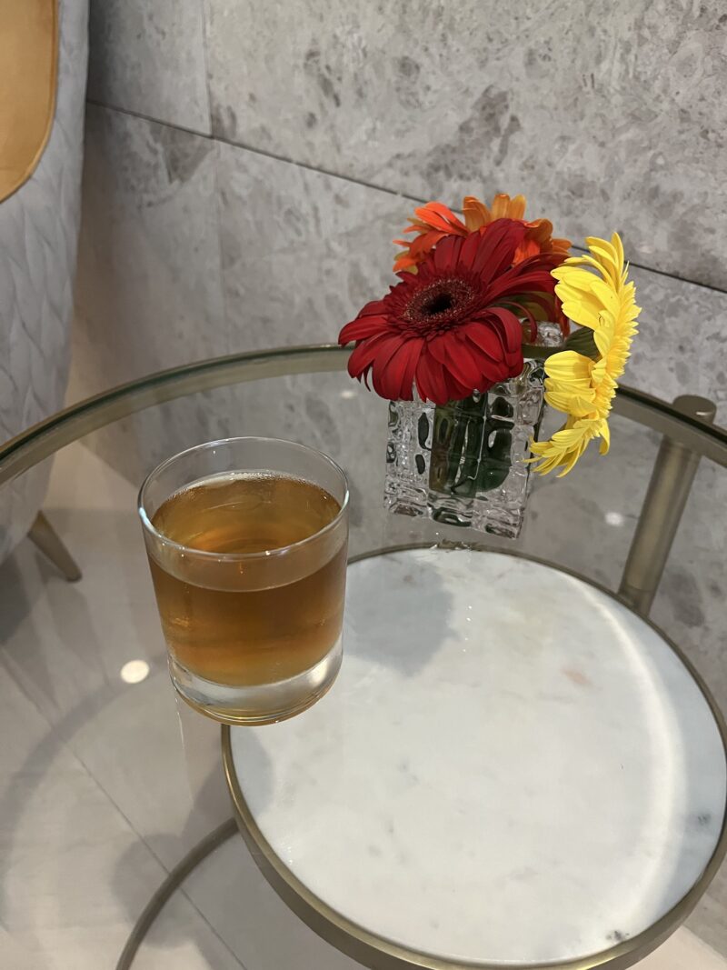 ウェルカムドリンクもくださいましたが、立って飲む人も多数😅