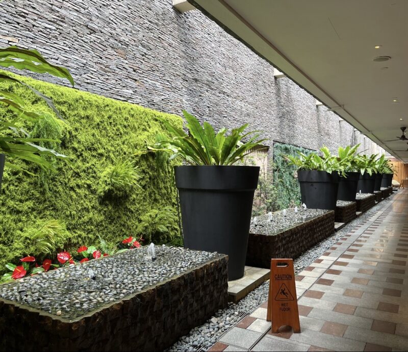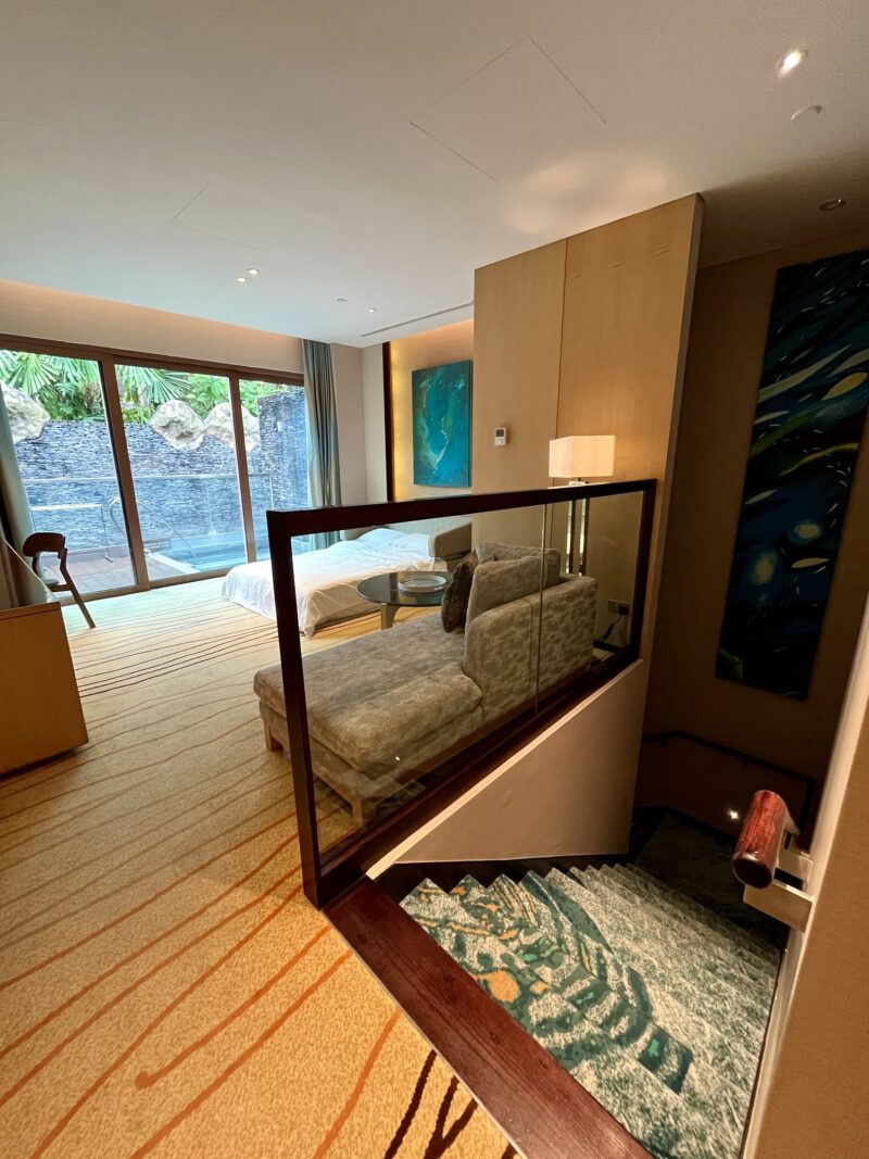 お部屋前の廊下。この天井部分が各部屋のプールという造りです。