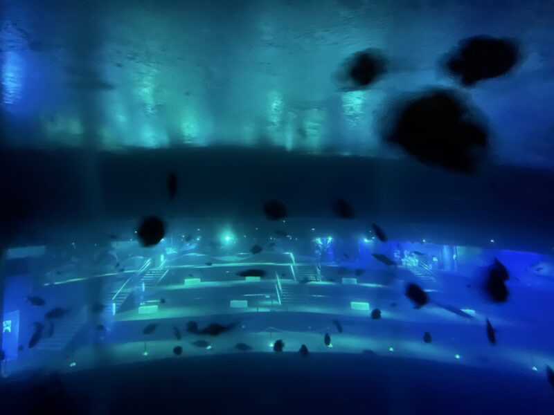水族館の営業が終わると泡が出なくなり、ライトも営業用のものとは違う感じになります。