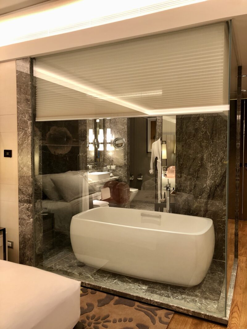 バスルームはベッドルームから丸見えですが、ちゃんと内側からブラインドを下ろせます🤭