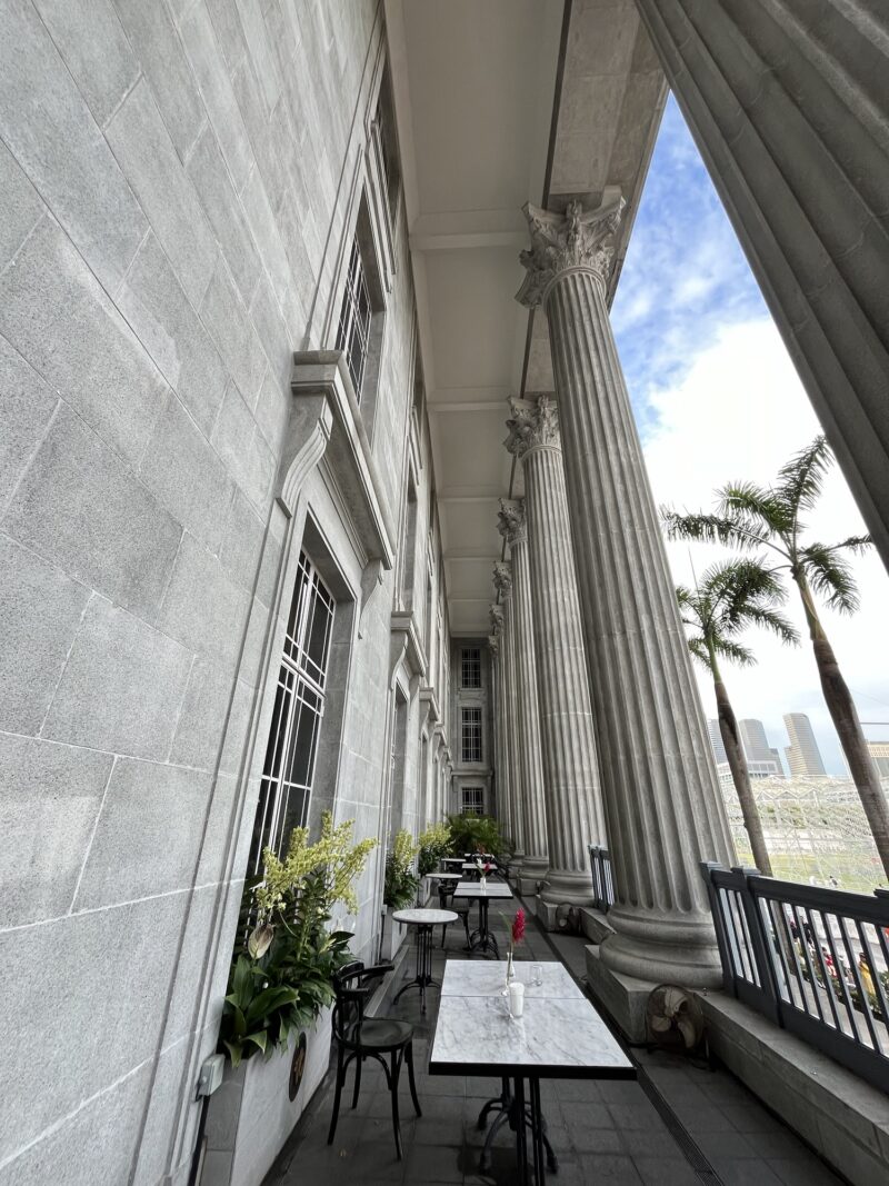 ギリシャの神殿のような柱も美しいバルコニー席からはマリーナベイサンズが見えるので、スタッフに声をかけて是非外に出てみてくださいね~